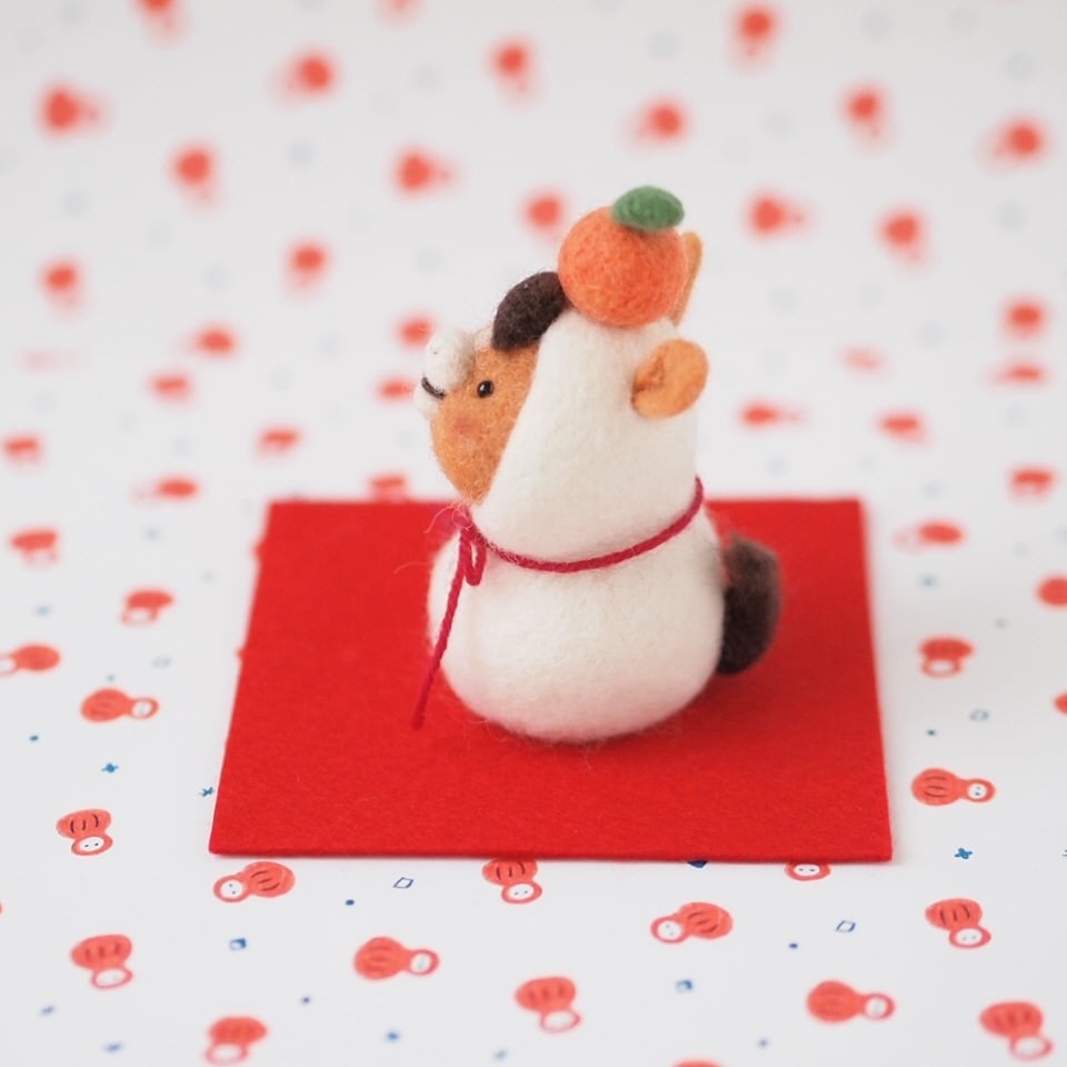 【早割・予約販売】2026年・お正月 干支・午・うま・羊毛フェルトお飾り ブラウン