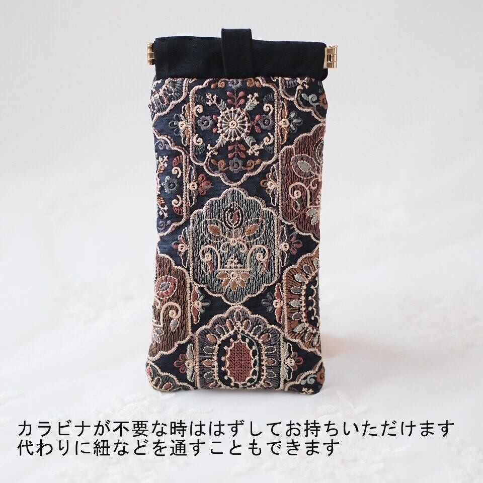 インド刺繍生地・メガネケース (カラビナ付き)・ブラック系 眼鏡ケース