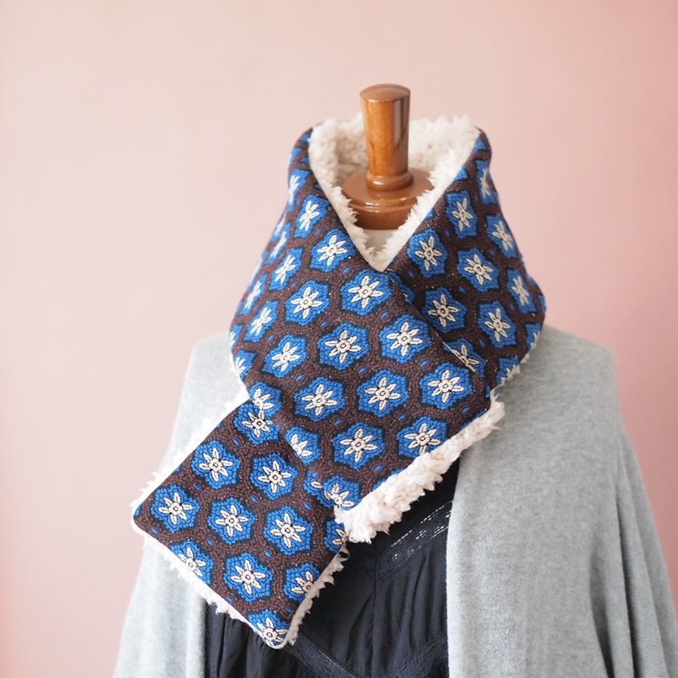 プチフラワー・ジャージージャガード×ふわふわボアのマフラー 中綿入り