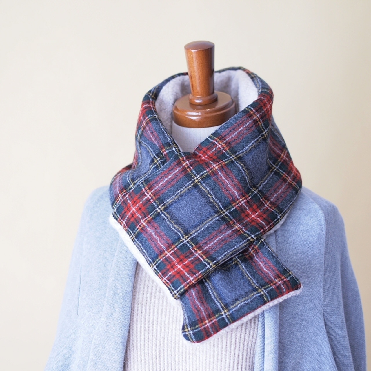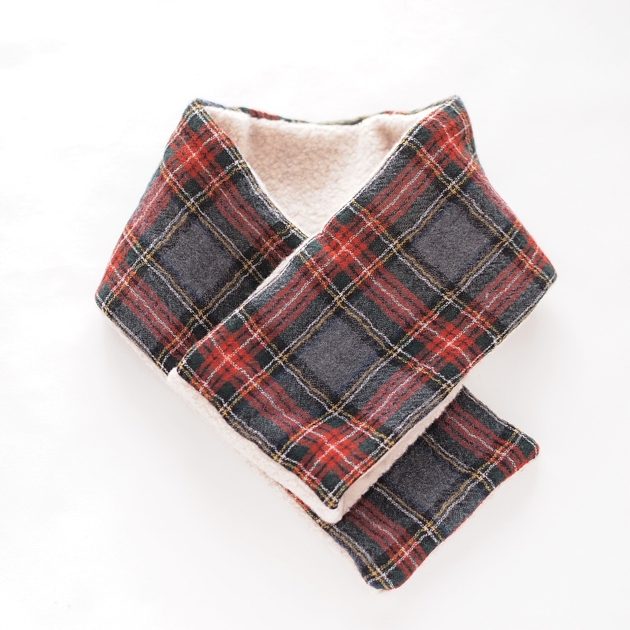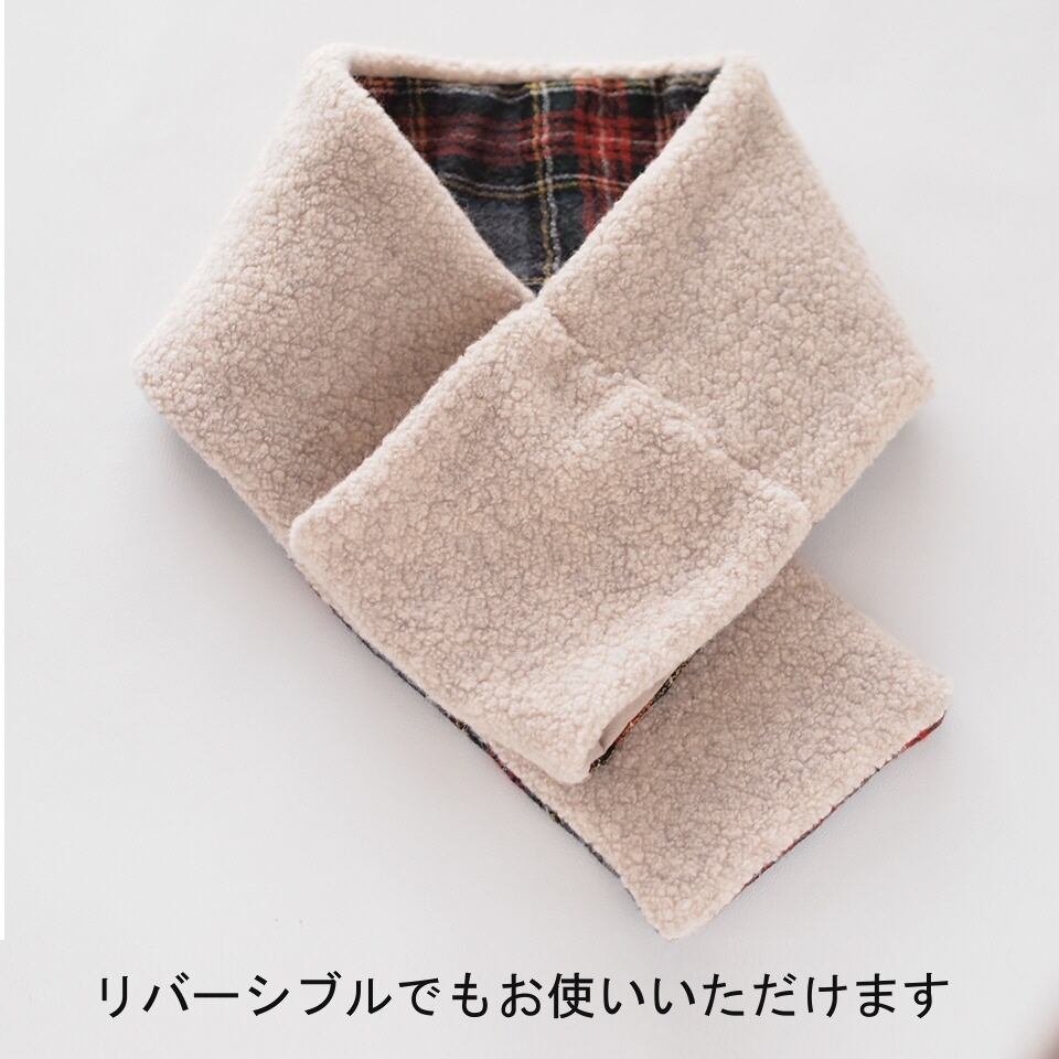 ふんわりやわらかなウール100%のタータンチェックとボアニットのミニマフラー