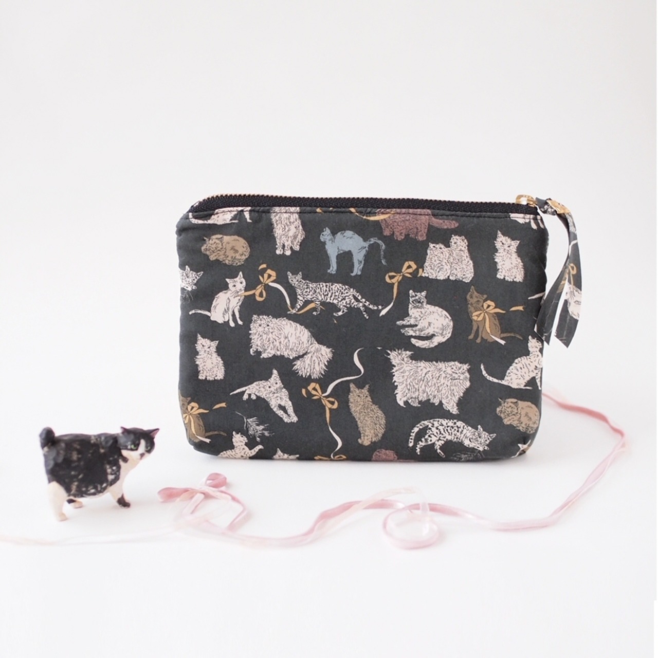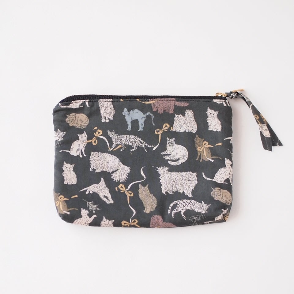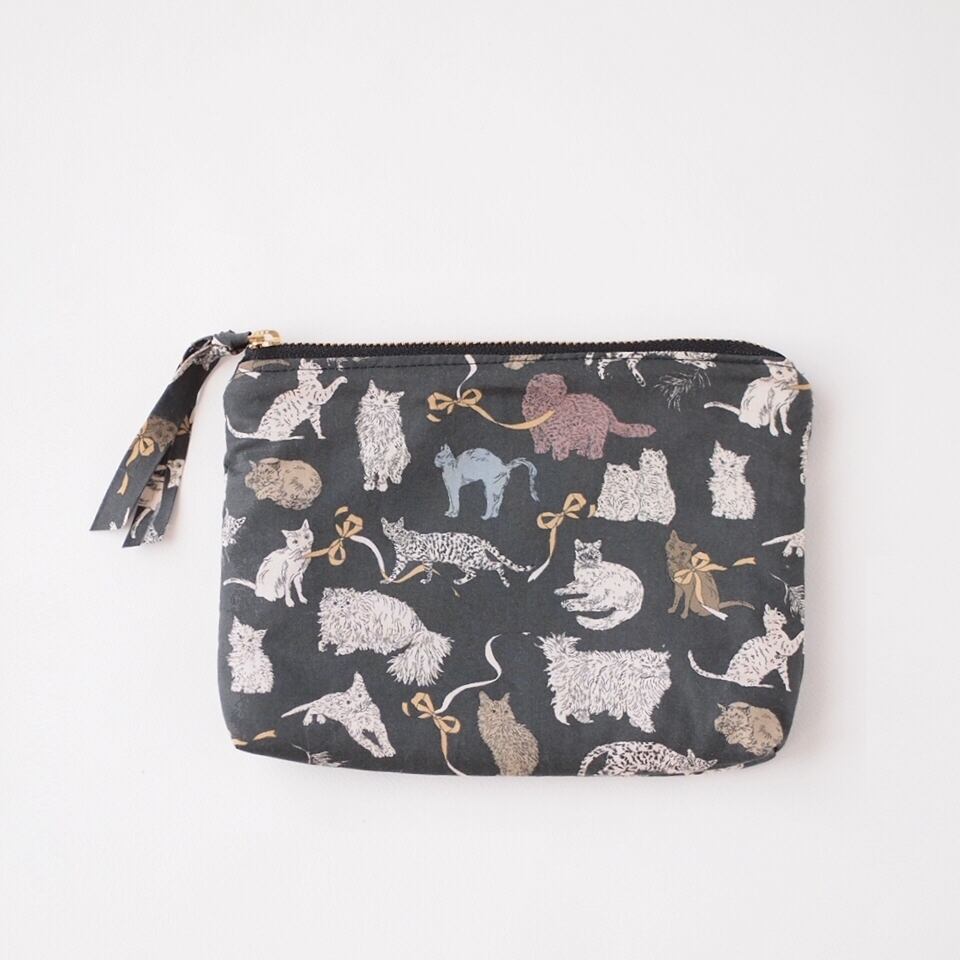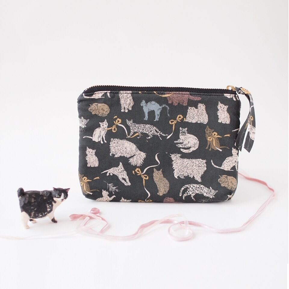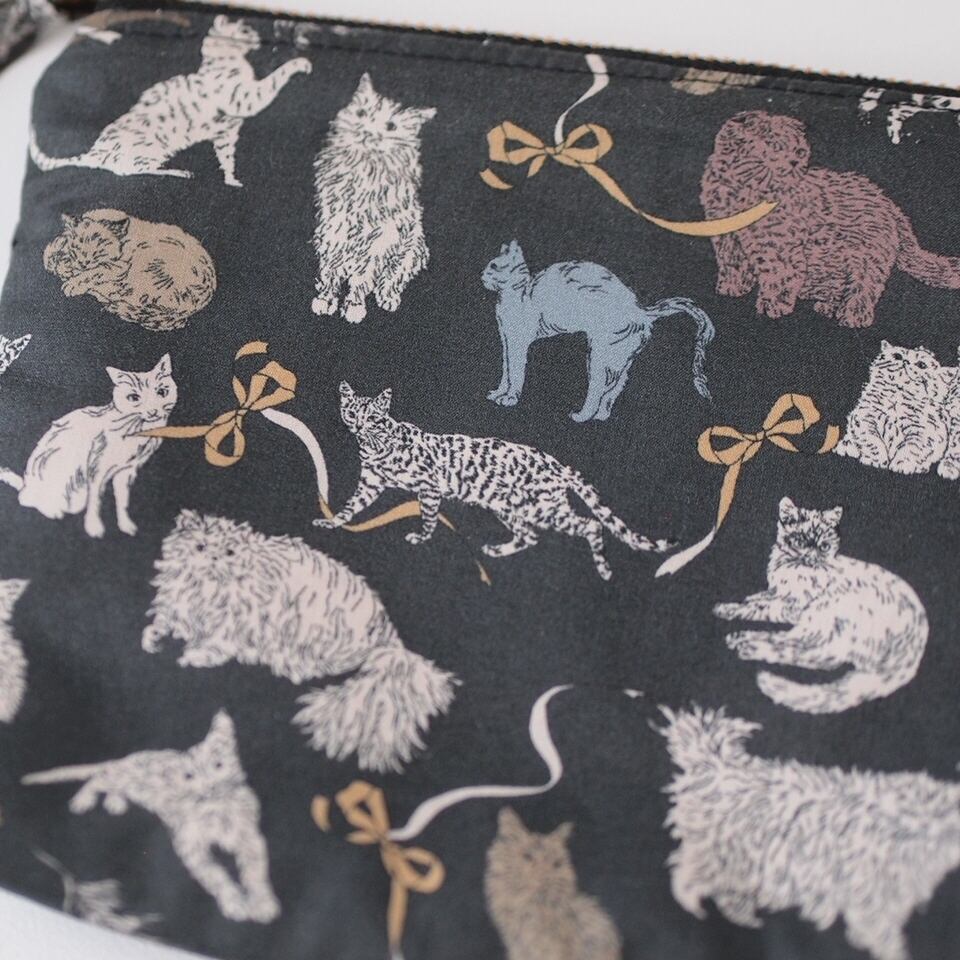 猫チャーム付き・猫いっぱいのポーチ・Koh & Eito LIBERTY FABRICS (BK)