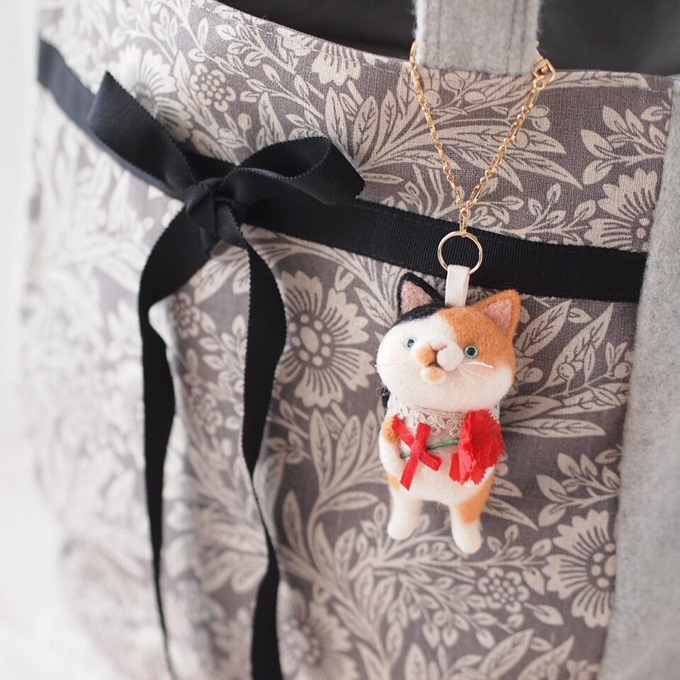 【予約販売】母の日・Happy Mother's Day ・ ミケネコさんチャーム・猫 羊毛フェルト