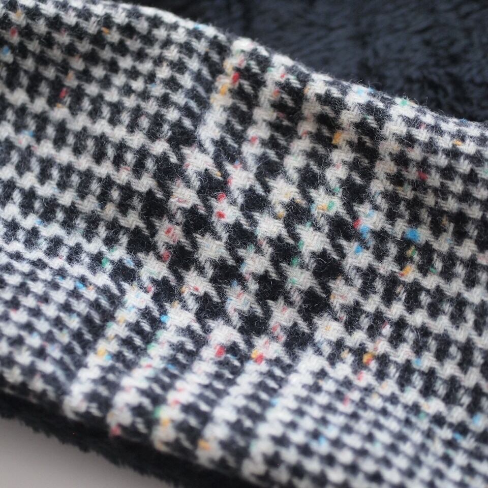 表側はウールのグレンチェック、落ち着いた色目の中にカラフルなネップが入っていて