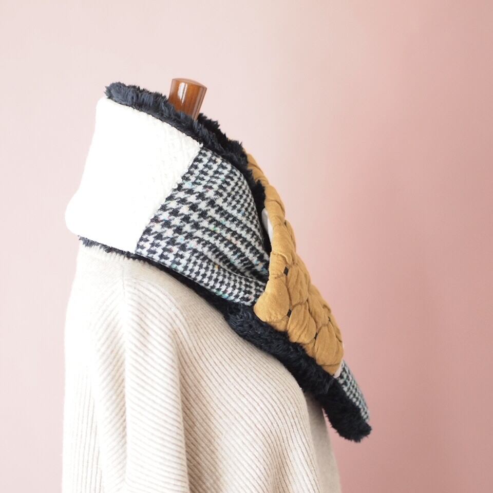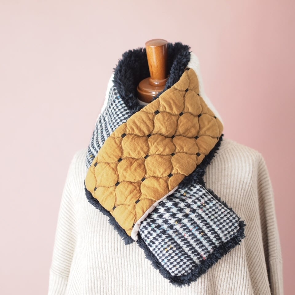 SALE ! ふんわりジャガード×プードルボアのマフラー・中綿入り