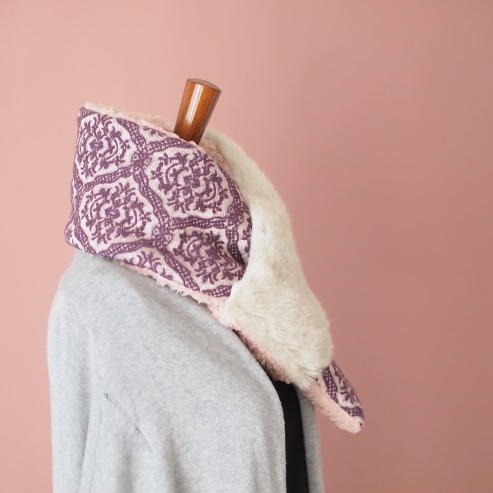 【受注製作】ダマスク柄×ふわふわフラッフィーファー マフラー 中綿入り