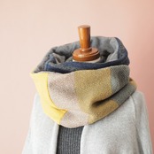 そんなこだわりの生地にウール混のボーダーや無地のウールガーゼを組み合わせているこちらのスヌード、ふんわりと軽くてユニセックスでお使いいただけるカラーとデザインです
