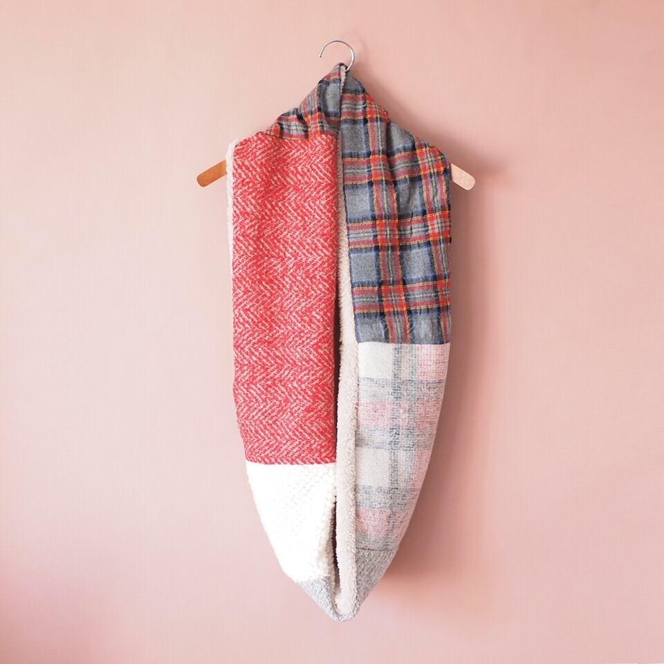 チャイナレッドが可愛いほんわかチェック&ループヘリンボーンのスヌード