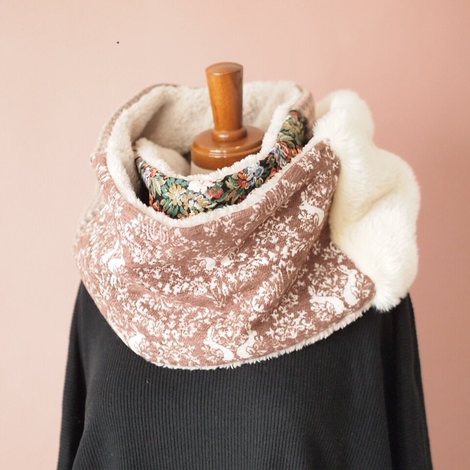 クラシカルな花柄のゴブラン生地とやさしいピンク系のウール生地をあわせた上品で大人かわいいスヌード